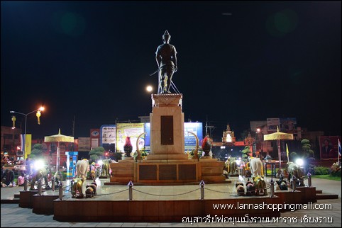 อนุสาวรีย์พ่อขุนเม็งรายมหาราช จังหวัดเชียงราย ตั้งอยู่บริเวณฟ้าแยกพ่อขุน เส้นทางที่จะไปอำเภอแม่จันหรือแม่สาย พ่อขุนเม็งรายเป็นกษัตริย์องค์ที่ 25 แห่งราชวงศ์ลวะ เป็นโอรสของพญาลาวเม็ง และพระนางเทพคำขยาย หรือพระนางอั้วมิ่งจอมเมืองประสูติเมื่อวันอาทิตย์ แรม 9 ค่ำ เดือน 3 ปีจอ พุทธศักราช 1782 และเสด็จสวรรคตที่เมืองเชียงใหม่ในปี พ.ศ. 1854รวมพระชนมายุได้ 72 พรรษา พ่อขุนเม็งรายได้สร้างเมืองเชียงรายขึ้นบนดอยทอง จากรากฐานเดิมที่เคยเป็นเมืองมาก่อน เมื่อปี พ.ศ. 1805ทรงเป็นปฐมกษัตริย์ แห่งราชวงศ์มังราย และรวบรวมบ้านเล็กเมืองน้อยเข้าเป็นอาณาจักรล้านนาไทยจนเจริญรุ่งเรืองจวบจนปัจจุบัน